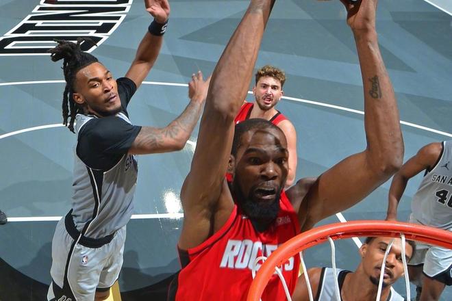 比賽一開場的跳球,申京壓根就沒跳。畢竟對面是文班亞馬,也沒必要費(fèi)這個(gè)力氣。但如果要說申京害怕文班亞馬,那可不是。要知道申京職業(yè)生涯最高得分,就是面對文班亞馬拿到的。而且火箭隊(duì)和文班亞馬之間,自選秀抽簽的時(shí)候,關(guān)系就變得很微妙了。比賽期間,多個(gè)回合申京都要求隊(duì)友拉開,自己背身單打文班亞馬,還真能進(jìn)!申京的籃下技術(shù),確實(shí)是讓文班亞馬的封蓋沒有用武之地。而杜蘭特,面對馬刺隊(duì)的防守開局顯得很是慢熱,投籃差得多。但這和火箭隊(duì)的陣容配置也有關(guān)系,沒有一個(gè)水準(zhǔn)線上的控球后衛(wèi),杜蘭特只能承擔(dān)更多的組織工作。因此,在本就能吸引防守的基礎(chǔ)上,對手更加變本加厲的針對。
