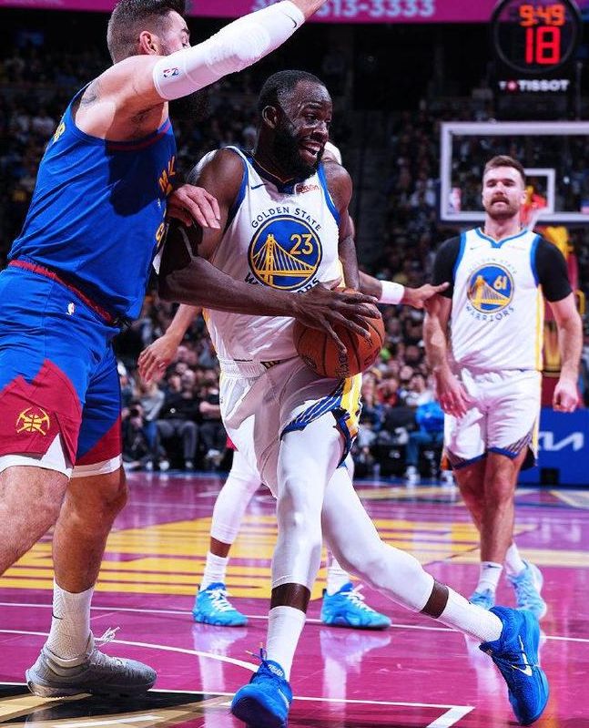 次節(jié)再戰(zhàn),格林三分命中吹響反擊號角,巴特勒率領(lǐng)球隊打出一波攻勢,一度將分差迫近至1分。危急時刻,穆雷挺身而出,連續(xù)命中兩記高難度三分,瓦蘭也在外線發(fā)炮,掘金瞬間穩(wěn)住局勢。隨著布萊恩和瓦蘭在內(nèi)線予取予求,分差再度被拉開到19分。勇士進攻端失誤不斷,防守端收縮策略收效甚微,瓦蘭甚至多次送出約基奇式的精妙傳球。盡管波杰姆斯基和理查德奮力追分,但穆雷手感火熱三分連連命中,約基奇更是命中壓哨超遠三分,掘金以66-49結(jié)束上半場。