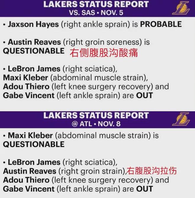 里夫斯的傷情報(bào)告,已從最初的“右腹股溝酸痛”更改為“右腹股溝拉傷”......